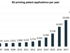 全球3D打印專利申請持續(xù)增長,中國位居第二