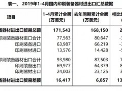 2019年1-4月份國內(nèi)印刷裝備器材進(jìn)出口簡報(bào)出爐