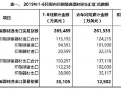 2019年上半年國內(nèi)印刷裝備、器材進(jìn)出口簡報(bào)