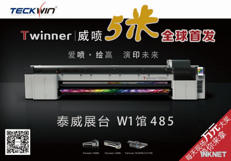 Twinner威噴系列噴繪機(jī)集泰威超寬幅面、超精細(xì)微噴、多介質(zhì)平卷打印技術(shù),融世界頂級(jí)軟硬件系統(tǒng)。威噴全系列噴繪機(jī)包括卷對(duì)卷噴繪機(jī)、平板機(jī)以及平卷一體機(jī)型,Twinner威噴系列于2014年7月3日上海廣印展全球首發(fā),強(qiáng)勢(shì)出擊。