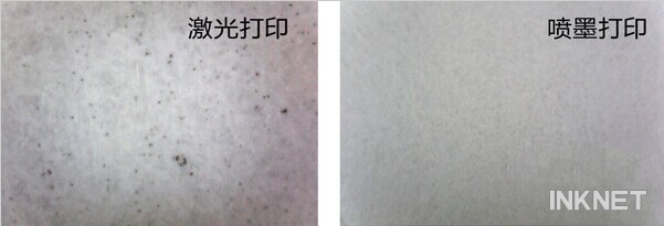 激光打印整張紙都要接觸感光鼓,所以空白處會(huì)殘留,噴墨打印不需要的地方不會(huì)噴墨,空白處很干凈