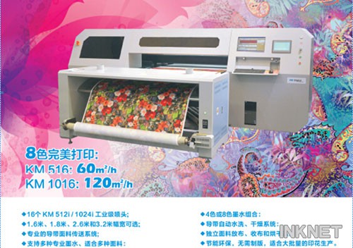 與傳統(tǒng)噴墨印花機(jī)相比,數(shù)碼印花機(jī)有高效、環(huán)保、易操作等優(yōu)勢(shì),使得數(shù)碼印花機(jī)迅速在印花行業(yè)內(nèi)站穩(wěn)腳跟,并推動(dòng)印花企業(yè)逐步邁向數(shù)碼印花階段;同時(shí)由于數(shù)碼印花機(jī)仍然處于快速發(fā)展階段,各種品牌各種機(jī)型琳瑯滿目,給數(shù)碼印花機(jī)使用者選擇一款適合自己的產(chǎn)品帶來了種種困難。據(jù)了解,康爾公司此次參展的KM導(dǎo)帶式數(shù)碼印花機(jī)優(yōu)勢(shì)明顯;從速度上看,KM516型每小時(shí)60平米,KM1016型每小時(shí)120平米;從幅寬看,有1.6米、1.8米、2.6米、3.2米等幅寬可選;4色或8色墨水組合噴印,獨(dú)具導(dǎo)帶自動(dòng)水洗、干燥系統(tǒng),節(jié)能環(huán)保無需制版。