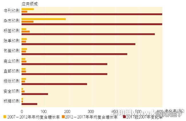 圖1 2007~2017年噴墨印刷在不同領(lǐng)域的應(yīng)用情況