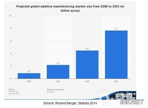 3D打印技術(shù)是近兩年全球制造業(yè)中的一個(gè)熱門話題。根據(jù)市場(chǎng)研究機(jī)構(gòu)Statista的統(tǒng)計(jì)預(yù)測(cè),到2013年底,全球3D打印市場(chǎng)的整體規(guī)模約為22億歐元(約30億美元), 2018年全球3D打印市場(chǎng)的規(guī)模將達(dá)到45億歐元(約61億美元),到2023年則繼續(xù)上升至77億歐元(約105億美元)。實(shí)際上,3D打印技術(shù)的正式名稱為增材制造,它基于數(shù)字化三維CAD設(shè)計(jì)數(shù)據(jù),使用塑料和金屬粉末等作為原材料來生產(chǎn)各種零件模型。