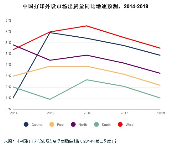 IDC最新發(fā)布的《中國打印外設(shè)市場分省季度跟蹤報(bào)告(2014年第二季度)》顯示,2014 年上半年中國打印外設(shè)市場五大區(qū)中,西部地區(qū)占比達(dá)到15.8%,同時(shí)IDC預(yù)測,今年下半年打印外設(shè)市場西部地區(qū)的占比將會進(jìn)一步升至16.2%。IDC中國終端系統(tǒng)研究成像、打印與文檔解決方案研究運(yùn)營中心研究總監(jiān)王吉平說:“在中國打印外設(shè)市場中,發(fā)達(dá)地區(qū)已日趨成熟,而西部地區(qū)近年來的經(jīng)濟(jì)發(fā)展為打印外設(shè)市場的增長打下了堅(jiān)實(shí)的基礎(chǔ)。IDC負(fù)責(zé)西部地區(qū)的分析師們,通過走訪西部地區(qū)的各級城市和訪問各地渠道商,發(fā)現(xiàn)那里的經(jīng)濟(jì)發(fā)展迅猛,中小企業(yè)數(shù)量也在不斷增加,企業(yè)規(guī)模成長飛速,未來大有可期。因此IDC認(rèn)為,西部地區(qū)長久以來的市場潛力正在逐漸兌現(xiàn)。”