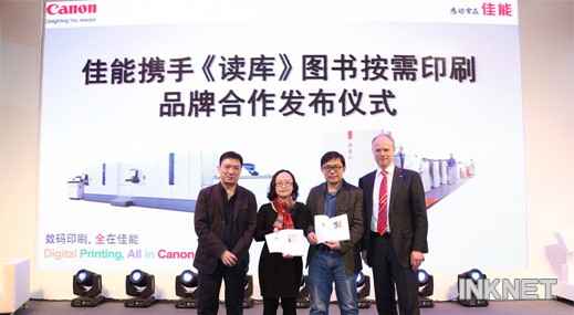 在2014年中國國際全印展上,100位《讀庫》讀者獲得了他們第一本印有自己照片和寄語的個性化《讀庫》讀物。這是佳能(中國)有限公司(以下簡稱佳能(中國))與國內著名綜合性人文社科讀物《讀庫》的一次聯(lián)手創(chuàng)新嘗試,通過高品質的佳能數(shù)碼印刷產(chǎn)品及按需圖書印刷解決方案,為《讀庫》出版?zhèn)€性化圖書提供全程支持。佳能(中國)副總裁韋海恩與《讀庫》主編、國內著名出版人張立憲共同出席合作發(fā)布儀式。雙方此次攜手,可以看作是開拓國內按需圖書印刷市場的一次積極嘗試。