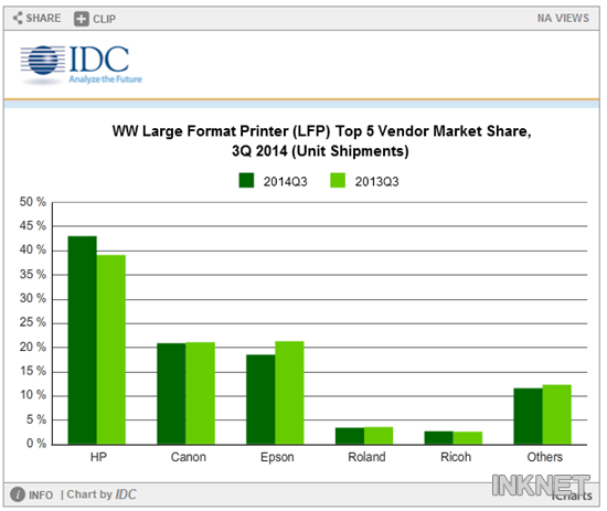 據(jù)IDC調(diào)查,全球大幅面打印機(jī)市場(chǎng)(LFP)2014年第三季度出貨量為 78,000臺(tái),同比增長(zhǎng)0.6%,實(shí)現(xiàn)連續(xù)5個(gè)月增長(zhǎng);但出貨總值約為7.8億,同比下降4%。