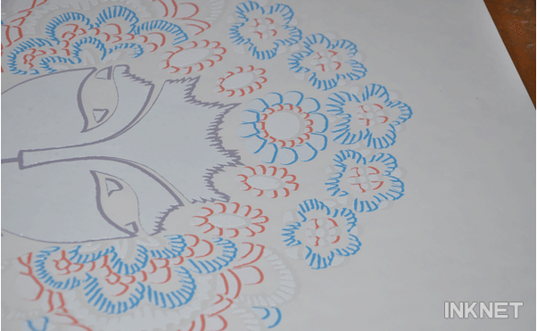 熱固油墨和膠漿的優(yōu)缺點(diǎn): 熱固油墨不會(huì)干版,普通工人可以馬上上手,不需要熟練工;油墨可以過目數(shù)比較細(xì)的版,印刷出來的燙畫邊緣比較整齊; 但油墨的成本比膠漿要高很多,彈力及遮蓋力不如膠漿好。但膠漿容易干版,刮版需要熟練工。