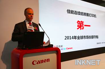 佳能(中國(guó))有限公司副總裁韋海恩分享佳能連續(xù)紙噴墨打印機(jī)2014年全球市場(chǎng)奪魁喜訊
