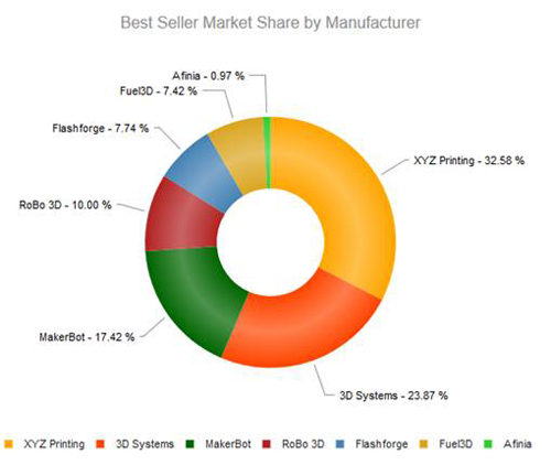 盡管銷售3D打印機(jī)的實(shí)體店仍然屈指可數(shù),但是幾大商家的線上銷售卻運(yùn)行得相當(dāng)成功。隨著近期來如此多的3D打印機(jī)可供選擇,我們迫切想得知,在部分大眾在線零售商中哪些機(jī)器是最暢銷的。感謝JeeQ Data公司幫我們找出答案。