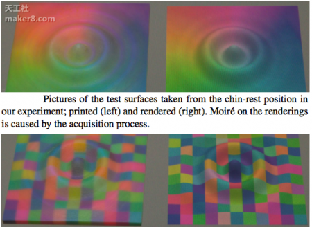 簡單地說,這些研究人員所做的就是,他們創(chuàng)造了一種算法,這種算法能夠使一臺3D打印機(比如Stratasys公司的Objet500Connex3)直接使用一種分層半色調方法控制每個體素的顏色和材質。所謂的半色調,是利用網(wǎng)點來模型一個對象的連續(xù)色調變化。