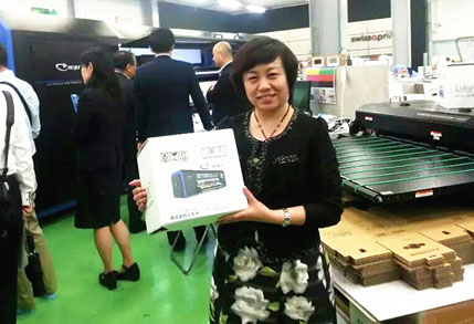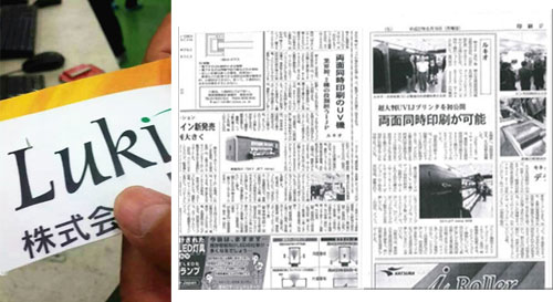 發(fā)布會上的人很多,來訪客戶對于SDM的打印效果都十分滿意。為了驗證SDM的雙面對位精準(zhǔn)度,我們用針扎穿剛剛打印好的畫布,現(xiàn)場展示,這令在場客戶都對雙噴打印效果贊嘆不已。我們的設(shè)備從展會一開始就在打印樣品,一直到結(jié)束都沒有停過。相比之下,旁邊的VUTEK設(shè)備則冷清了很多,咨詢的人寥寥無幾,最后索性停止了打印展示,只放著剛剛打印好的樣品供人參觀。同時,日本《印刷時報》在現(xiàn)場還對梁總和古谷社長進(jìn)行了采訪,報道將會刊登在報紙上,關(guān)于SDM及此次發(fā)布會的盛況都將會在日本噴繪行業(yè)產(chǎn)生深遠(yuǎn)的影響。
