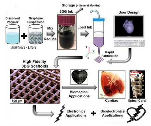 可以這么說,Shah教授和她的團(tuán)隊(duì)所得到的這種油墨,是迄今為止石墨烯含量最高的一種3D打印材料(在Shah教授之前的紀(jì)錄大約是20%)。這意味著石墨烯獨(dú)特的電氣和機(jī)械性能將很快被投入應(yīng)用。更為重要的是,這種油墨除石墨烯之外的部分主要包括一種具有生物相容性的可降解聚酯(PLG)材料,科學(xué)家們稱,這使得該油墨能夠靈活和安全地用于醫(yī)療應(yīng)用。