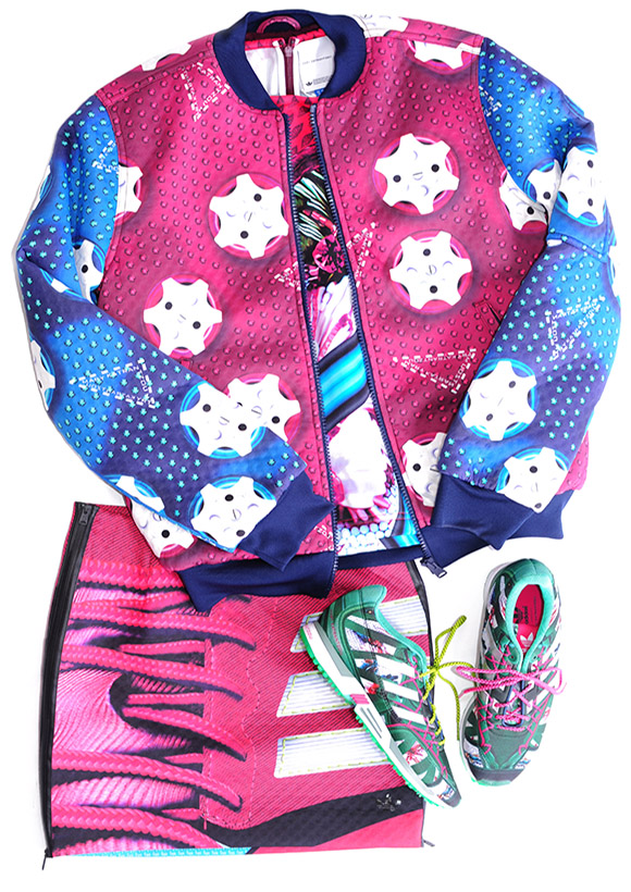 2014年,專注推出聯(lián)名款的Adidas就找到了這位印花女王,合作推出了第一個膠囊系列,把數(shù)碼印花豪放地加在了阿迪的三道杠上面。
