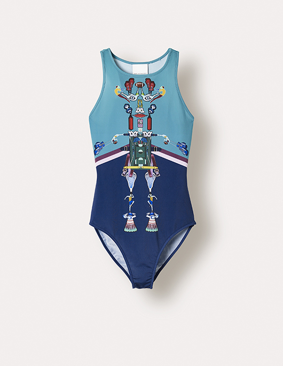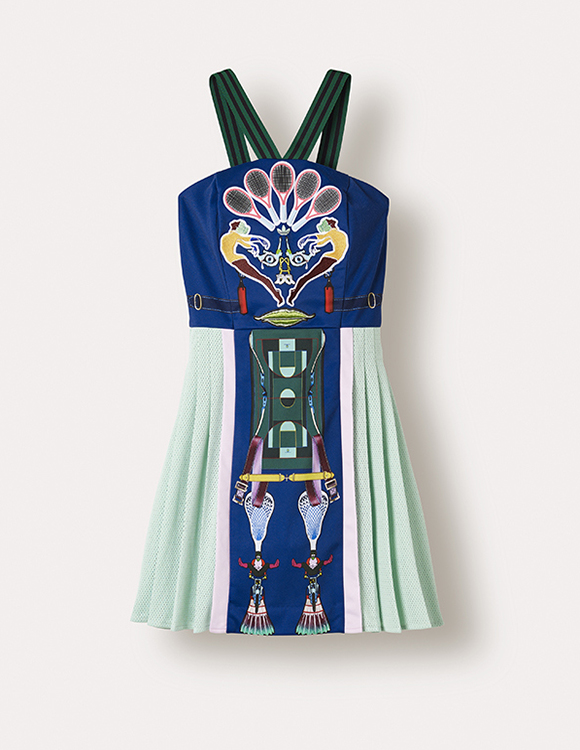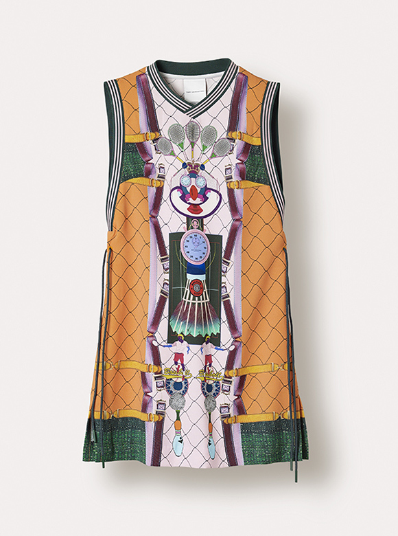 在本次第二個膠囊系列的發(fā)布會上,Katrantzou表示,自己作為80后出生的孩子,專門為這次設(shè)計回顧了1988年的首爾奧運會和80年代的健美操課,試圖從中找到一些靈感。“我們開始考慮用到這類符號,并且把它們?nèi)谌氲桨⒌线_(dá)斯的風(fēng)格當(dāng)中,”Katrantzou說道:“像網(wǎng)球裙、潛水服和田徑衣這種廓形,如果加入了新的元素符號,我覺得那樣子一定會很有趣。”