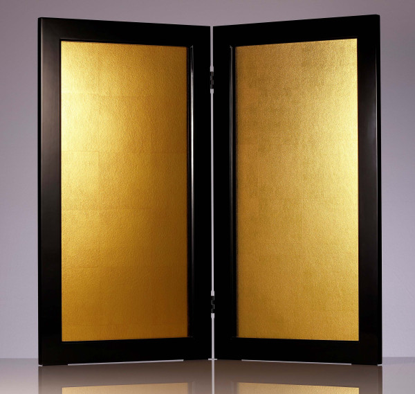 使用質(zhì)感圖像處理技術(shù)創(chuàng)造的印刷樣例:日式金葉折疊屏風(左側(cè):真實的金葉屏風/右側(cè):質(zhì)感打?。?/p>