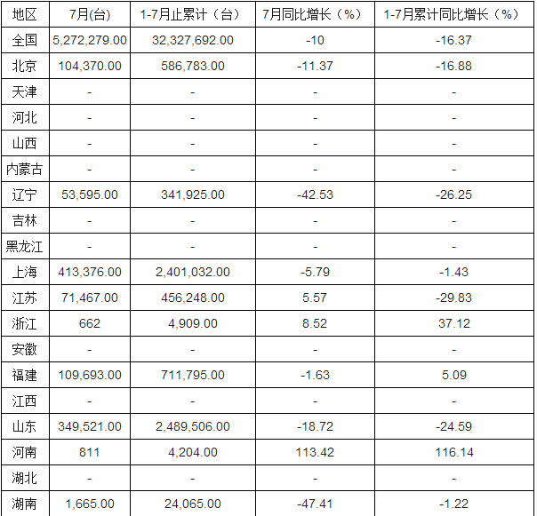2015年1-7月全國打印機(jī)產(chǎn)量分省市統(tǒng)計(jì)表