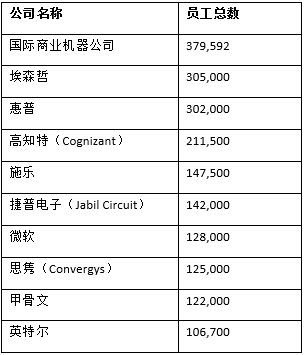 下表是該行業(yè)各主要公司的雇員情況(截至2014財年):