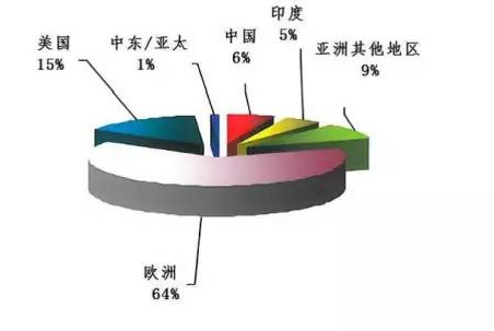 有資料顯示,2012年全球印花行業(yè)產(chǎn)量約300億平米/年,年產(chǎn)值約1650億美金,年均增長率約1~2%。而根據(jù)最新的Smithers Pira研究報告《數(shù)碼印花2017年展望》介紹,數(shù)碼印花從2009年到2012年,每年以23%的速度增長,且未來有加速發(fā)展的趨勢。預計到2015年,數(shù)碼印花面料總產(chǎn)量將達25~30億平米/年,其中數(shù)碼印花發(fā)展最快的歐洲,2013年的數(shù)碼印花產(chǎn)量已占到全年總印花產(chǎn)量的40%。全球數(shù)碼印花的市場概況參見圖1,其中歐美占有比率最高,對比傳統(tǒng)印花的全球分布情況圖2,我們可以很清楚的看到,作為傳統(tǒng)印染行業(yè)最集中的亞洲地區(qū)(中國,印度,東南亞),在數(shù)碼印花發(fā)展上卻遠遠落后于歐美國家。例如歐洲最大的印花企業(yè)之一德國KBC公司,上世紀80年代曾到中國開設合資企業(yè),因經(jīng)營不佳后返回歐洲,近年來借助數(shù)碼印花技術重新崛起,目前該公司擁有20余臺高速數(shù)碼印花機,數(shù)碼印花加工能力在歐洲首屈一指。西班牙印花巨頭Athenea公司成立于1976年,起初作為一家名不見經(jīng)傳的小型印花企業(yè),面對歐洲大型印染企業(yè)的技術壁壘及亞洲企業(yè)的低價競爭,該公司只能在市場夾縫中苦苦支撐。5年前該公司向數(shù)碼印花轉型。利用美佳公司(Reggiani)的ReNOIR 3.4米寬幅數(shù)碼印花機的靈活性及快速反應能力,結合自身優(yōu)秀的設計理念,Athenea不僅在原來具有優(yōu)勢的家紡市場不斷創(chuàng)新并取得巨大成功,同時也在快速變化的服裝面料市場獲益良多。目前該公司的數(shù)碼印花能力已超過300萬米/年。