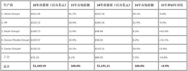 1. 全球打印機(jī)生產(chǎn)商第三季度市場份額表