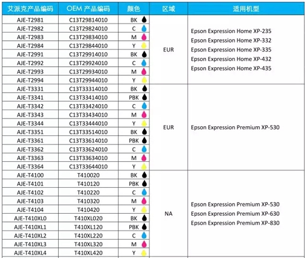 2015年8月,愛普生在歐洲發(fā)布了T29系列的四色家用打印機(jī),該系列打印機(jī)為A4多功能打印機(jī),配備獨立墨盒,并具有移動打印功能。據(jù)艾派克技術(shù)分析,此系列芯片屬于愛普生墨盒芯片的第六代技術(shù)。