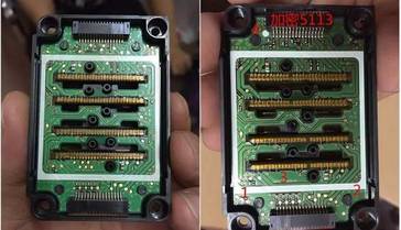 請(qǐng)大家看下面這張對(duì)比圖片,左側(cè)這只是沒(méi)有加密的愛(ài)普生5113噴頭,右側(cè)這只是經(jīng)過(guò)加密的噴頭。