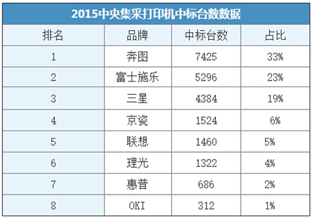 在未來(lái),政府采購(gòu)和行業(yè)采購(gòu)在打印設(shè)備這條產(chǎn)品線的競(jìng)爭(zhēng)會(huì)日益激烈,而生命周期總體擁有成本、設(shè)備成本、耗材與維護(hù)成本是采購(gòu)中考量的重要因素。除此之外,產(chǎn)品性能與應(yīng)用的匹配度也會(huì)成為采購(gòu)中的重要考量因素,從2015年的數(shù)據(jù)中都可以反應(yīng)出央采選擇品牌和產(chǎn)品時(shí)的客觀性。
