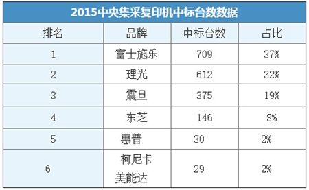 一直以來(lái),經(jīng)濟(jì)形勢(shì)與政策對(duì)政府采購(gòu)與行業(yè)采購(gòu)產(chǎn)生直接影響,下面我們來(lái)分析一下2015年國(guó)采中心的數(shù)據(jù),2015年國(guó)采中心批量集中采購(gòu)11期,其中打印機(jī)共計(jì)22,701臺(tái),采購(gòu)金額達(dá)4,269.6萬(wàn),復(fù)印機(jī)共1,901臺(tái),采購(gòu)金額3,107萬(wàn)。