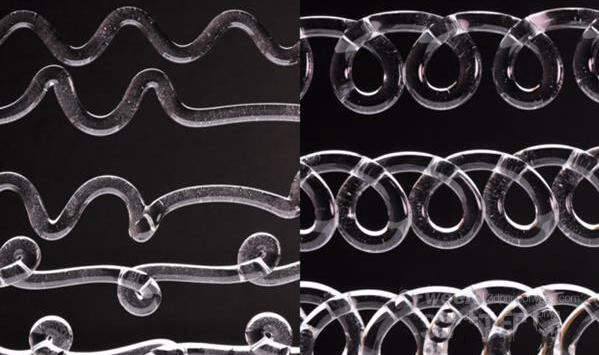 早在2015年8月,麻省理工學院(MIT)媒體實驗室的Mediated Matter項目成功地開發(fā)出了具有相當精度的玻璃3D打印機。而近期,Mediated Matter與該校玻璃實驗室以及著名數(shù)學家Pierre-Thomas Brun博士共同合作,借助流體動力學研發(fā)了“熱熔玻璃縫紉機”技術(shù),從字面上就不難理解,這個技術(shù)將會讓打印出來的玻璃以螺旋狀的形式存在,然后再進行“編織”構(gòu)成更為復雜的模型。