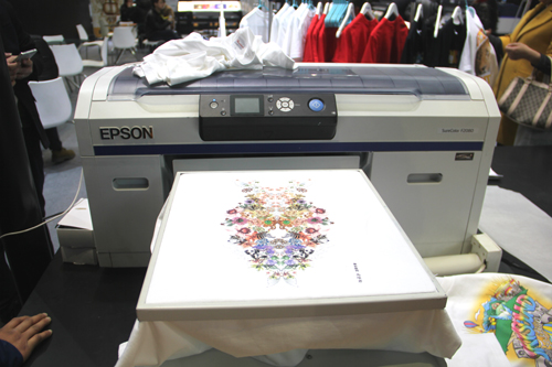 本次展會(huì)愛(ài)普生展出的有S系列產(chǎn)品S40680、S60680、S80680和F系列產(chǎn)品F2080、F6080以及F7180。S系列產(chǎn)品針對(duì)的是廣告、圖文噴繪等行業(yè)領(lǐng)域,優(yōu)質(zhì)的輸出效果與瑞麗動(dòng)人的色彩呈現(xiàn)方式吸引了大批廣告界人士的青睞。而愛(ài)普生F系列產(chǎn)品的應(yīng)用領(lǐng)域主要針對(duì)于印染行業(yè),同時(shí)其打印具有相當(dāng)?shù)陌踩?,由于其使用的墨水所承印的布料可以達(dá)到Oeko-texStandard100的第一級(jí)別認(rèn)證,可保證印花布料適合兩歲以下嬰幼兒服裝服飾生產(chǎn)。另外,愛(ài)普生B系列展出的B6080和B7080由于其色域極為寬廣,打印品質(zhì)卓越等特點(diǎn)同樣受到了強(qiáng)烈關(guān)注,成功躋身成為廣告打印界的新寵設(shè)備,而B系列采用的染料性墨水也可滿足國(guó)內(nèi)絕大多數(shù)廣告客戶的需求。
