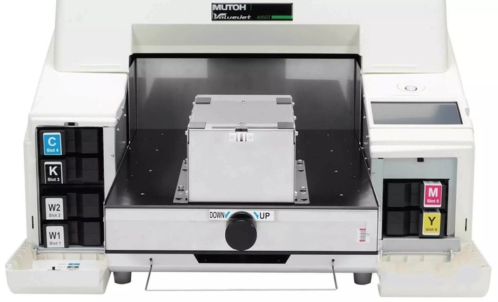武藤405打印機(jī)配備了7英寸的觸摸式液晶屏控制面板,讓客戶很容易瀏覽;可打印區(qū)域是414mm×559mm,使用水性墨水,采用200ml墨盒。這種類型的機(jī)器可以供任何夫妻店形式的企業(yè)使用,操作人員也不必是專家。