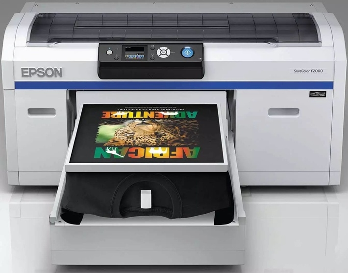 愛普生公司有兩種機(jī)型的SureColor F2000,一種只能打印CMYK,一個(gè)還能在深色面料上印刷白色。深色襯衫風(fēng)靡一時(shí),但是如果沒有預(yù)處理和白墨打底,大多數(shù)圖案都會(huì)被吸收到深色織物中,預(yù)處理能使較厚白色墨水層不被滲入織物中。