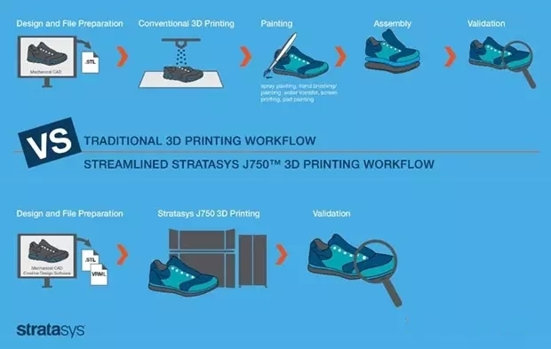從上圖我們可以看到,J750只需一次打印作業(yè)就制造出了一只完整的運動鞋。“這款3D打印機最重要的一點就是突破了現(xiàn)實的門檻。”Stratasys公司首席商務(wù)官Josh Claman說。