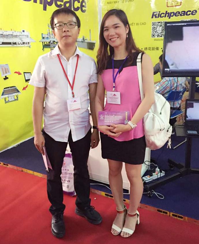 這次越南西貢紡織服裝行業(yè)面料服裝展,李小姐再次和老朋友們見面,富怡集團越南辦的曹先生見面第一句就說:“沒想到這時間過得挺快的,你們又宣傳新一屆的展會了。”小編感覺到非常欣慰,這可是花了時間跑海外市場打入海外人心的證據(jù)。在走訪的期間,海外宣傳代表李小姐還相繼拜訪了幾家企業(yè),兄弟機械越南當(dāng)?shù)卮砩桃藏Q起大拇指,因為他們得知在這之前浩瀚資訊剛在泰國做完宣傳,這會又跑到越南來了,用心做事的永遠值得敬仰。碰巧鴻盛數(shù)碼也在越南參展,他們就像熟悉的老朋友非常愉快地聊起來了!有圖有真相,咱看圖吧。