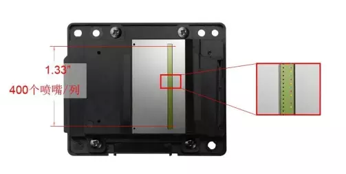 每個芯片上,噴嘴呈雙列布局,每列擁有400個噴嘴,噴嘴陣列長度1.33英寸。