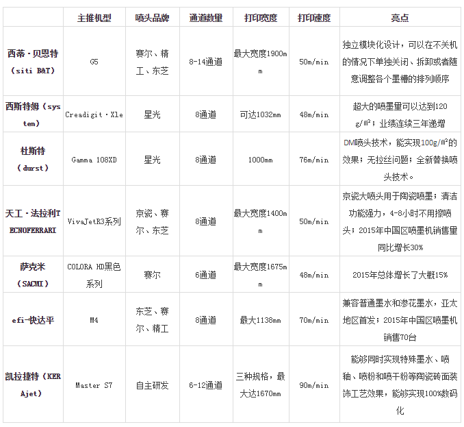 當(dāng)前各大國(guó)外品牌噴墨機(jī)主推機(jī)型參數(shù)