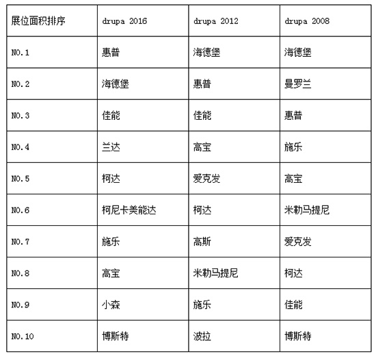 從上面這個列表中我們能夠看到,今年的數(shù)字印刷供應(yīng)商在前十展位面積排名中占了絕大部分。這意味著什么?
