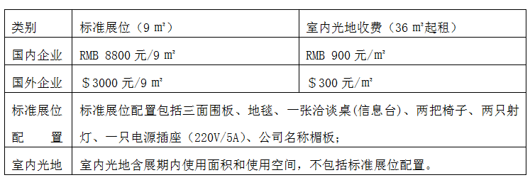 【展位規(guī)格及收費(fèi)標(biāo)準(zhǔn)】