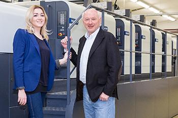 奧地利Samson Druck 印刷公司董事長 Gerhard Aichhorn先生與其助理Lisa Aichhorn女士和他們的ROLAND 700 EVOLUTION卓越版印刷機