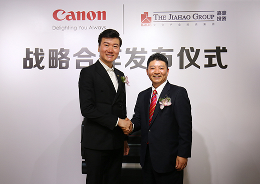 佳能(中國(guó))有限公司華東區(qū)域總部首席代表黃沖(右)、嘉豪投資集團(tuán)董事長(zhǎng)施嘉豪(左)出席發(fā)布儀式