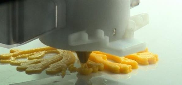 ▲食品3D打印機(jī)正在擠出食材