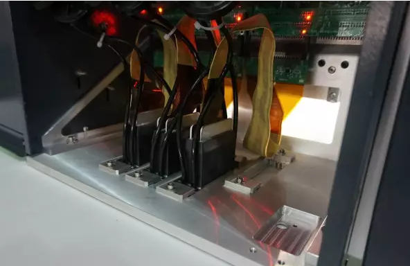 大家都知道UV打印機是1個噴頭2個顏色,一般配置都C,M,Y,K,W,G(光油) , 2+1+1配置。采用的是進口理光G5噴頭,噴頭內(nèi)置是全鋼質(zhì),防腐蝕,精密度高。理光G5噴頭是專業(yè)的工業(yè)化生產(chǎn)噴頭,可以連續(xù)操作工作24小時。uv油墨是粘稠性的油性墨水,帶一點腐蝕性,當然對我們的理光噴頭是完全沒問題。但是光油呢?用噴頭打印出來這能行嗎?