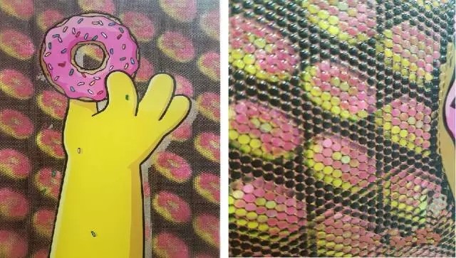 愛克發(fā)的3D透鏡技術(shù)使用網(wǎng)花的效果與微小球面的透鏡成為光柵,就像是影像的三維效果。較多細(xì)節(jié)的影像,如同圖中的甜甜圈所示,就需要較大的透鏡。
