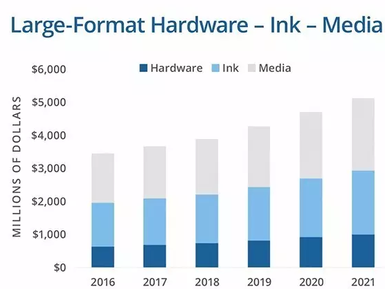 IDC指出,制造商已經(jīng)采取重要措施,通過不斷開發(fā)更好、更高效的新油墨(覆蓋更多的油墨或更少的油墨)來促成其印刷機的油墨銷售,開發(fā)在更廣泛的基材有更好表現(xiàn)的墨水,延長保修期和提供更大的墨盒有助于PSP,因為它們能夠長時間運行印刷機而不會中斷。在大幅面數(shù)字印刷墨水市場的每個部分都有這么多的事情發(fā)生,用戶和經(jīng)銷商尋求運營和銷售優(yōu)勢必須密切監(jiān)測這些動向。
