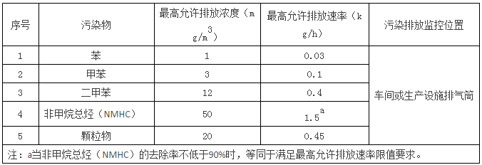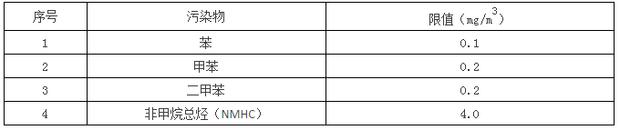表2 揮發(fā)性有機(jī)物排放濃度限值(單位mg/m3)