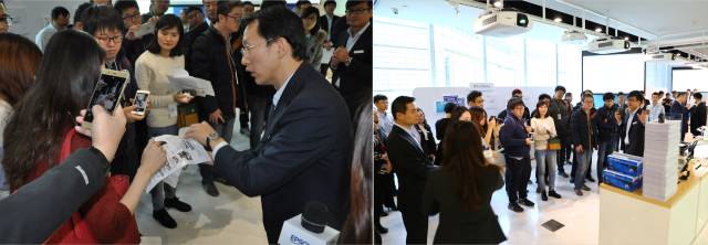 右:愛普生“減法”實(shí)驗(yàn)室──產(chǎn)品經(jīng)理現(xiàn)場(chǎng)講解“1>3”實(shí)驗(yàn)
