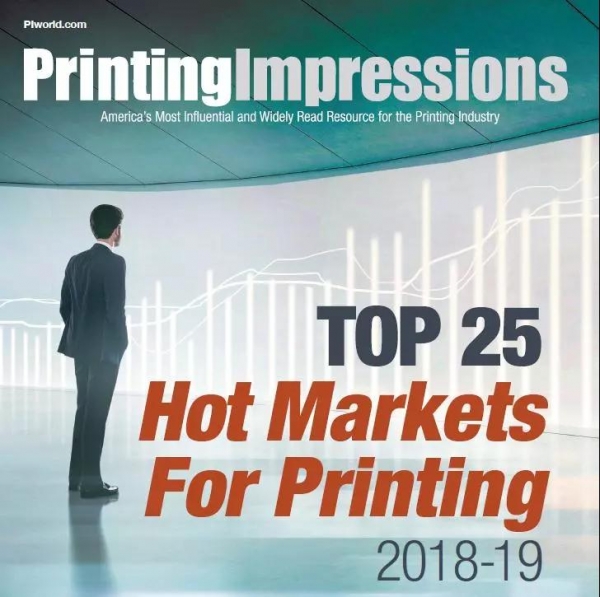 由美國印刷行業(yè)門戶網(wǎng)站PIworld發(fā)布了“2018-2019年度印刷需求熱門市場”的印刷業(yè)概覽預(yù)測,該年度研究項(xiàng)目通過將多方資源、信息進(jìn)行統(tǒng)計(jì)、關(guān)聯(lián)和匯總,確定出2018-2019年度印刷產(chǎn)品需求最高的前25個(gè)行業(yè)。