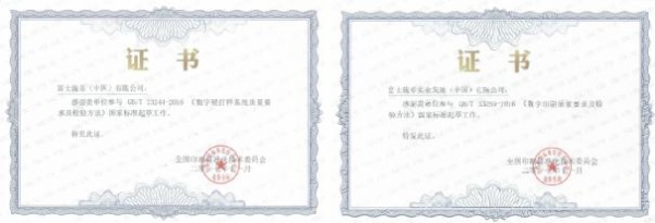 全國印刷標準化技術(shù)委員會為富士施樂(中國)有限公司頒發(fā)的證書
