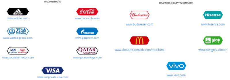 據(jù)國際足聯(lián)官網(wǎng)披露,共有五家中國企業(yè)成為俄羅斯世界杯的贊助商。其中,萬達(dá)集團(tuán)是國際足聯(lián)的合作伙伴,蒙牛、海信、VIVO三家企業(yè)為本屆世界杯贊助商,雅迪集團(tuán)為世界杯亞洲區(qū)域贊助商。