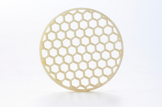 佳能開發(fā)的是一種新的氧化鋁基陶瓷材料,適用于選擇性激光熔融工藝以及新的零件生產(chǎn)技術(shù)。通過(guò)該技術(shù),3D打印機(jī)可穩(wěn)定地生產(chǎn)具有諸如中空和多孔結(jié)構(gòu)的形狀復(fù)雜的陶瓷部件,這些部件難以使用普通金屬模制或切割工藝制造。例如,當(dāng)制造具有六邊形空心并且直徑約為19mm的蜂窩形狀零件時(shí),采用3D打印技術(shù)制造出來(lái)的零部件在后處理前后的尺寸差異小于0.8%。